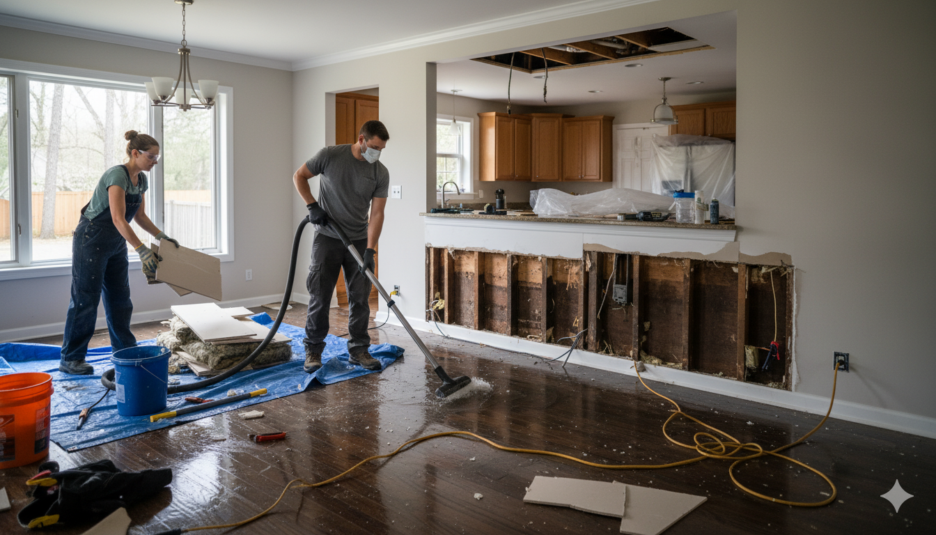 NOTE: If tools, time, or contamination severity exceed homeowner capacity — for example, sewage backup, structural compromise, or moisture that persists after 48–72 hours — contact a professional restoration provider. In Tampa Bay, certified restoration teams offer rapid emergency response and advanced drying equipment to protect your health and property.